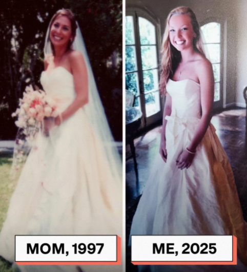 Rachel had spent her whole life holding onto one promise — that when she got married, she’d walk down the aisle wearing her late mother’s wedding gown. It wasn’t just a dress; it was the last piece of her mom she had left after losing her to cancer at 14. Every time she touched the satin and lace, she felt closer to her mother’s warmth, her love, her laughter. But on the morning of her wedding day, that promise was shattered. The gown she’d hidden safely for years was gone — thrown into the trash by her stepmother, Sandra, who believed she could erase the past one keepsake at a time.