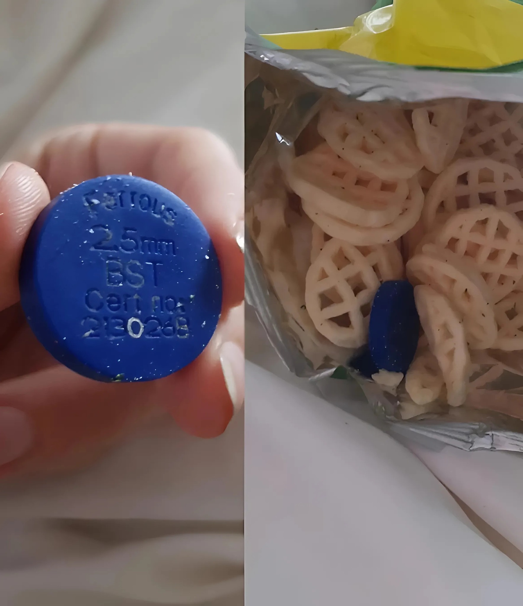 Imagine sitting down with your child to enjoy a simple snack, only to find a strange blue disc buried among the chips. That was exactly what happened to me. My son tore open a fresh bag of sour cream–flavored chips, and nestled between the crunchy bites was something that clearly didn’t belong. It was round, plastic, and stamped with lettering. My first reaction? Shock, confusion, and a lot of questions.