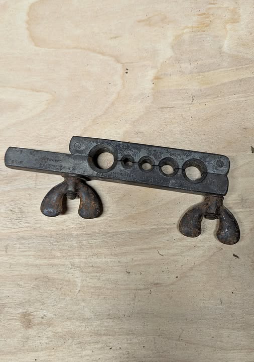 This clever little clamp is used to flare the ends of copper tubing or brake lines. Basically, when you’re working on plumbing or automotive repairs, you sometimes need to widen the end of a metal tube so it can connect snugly with another fitting. That’s where this tool shines. You secure the tube in the clamp, tighten it down, and use a cone-shaped press to form a smooth, flared opening.