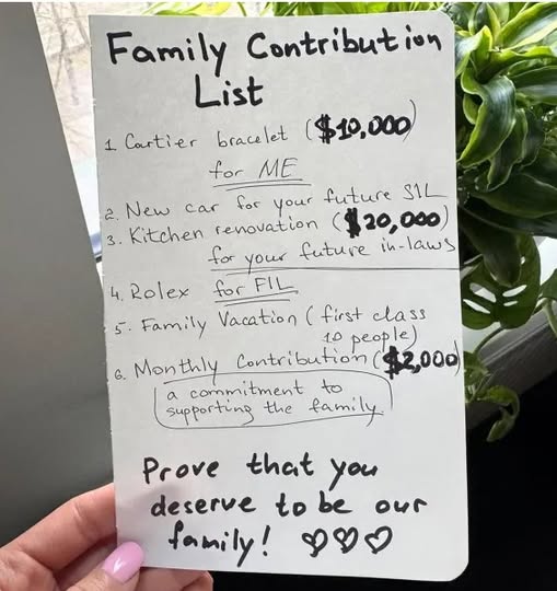 There’s a difference between tradition and transactional behavior. Families that love you don’t send invoices for belonging. They make room. If someone hands you a shopping list and calls it acceptance, teach them a better lesson: that respect is earned through behavior, not receipts. Do it with patience, firmness, and the kind of grace that leaves no room for the argument to return. That’s a lesson they’ll remember—and likely be grateful for, in time.