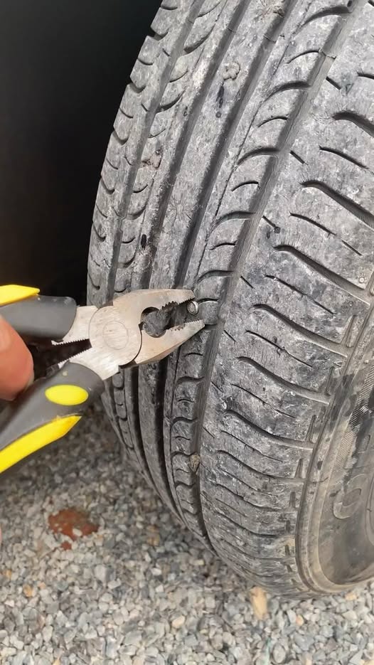 The oddest part? The nail wasn’t straight. It wasn’t lodged in the tire at an angle like you’d expect from driving over it. No, it was wedged—like it had been deliberately forced in at a specific angle. The nail wasn’t just casually caught; it looked like it had been intentionally driven into the tire in such a way that it didn’t immediately cause a blowout.
