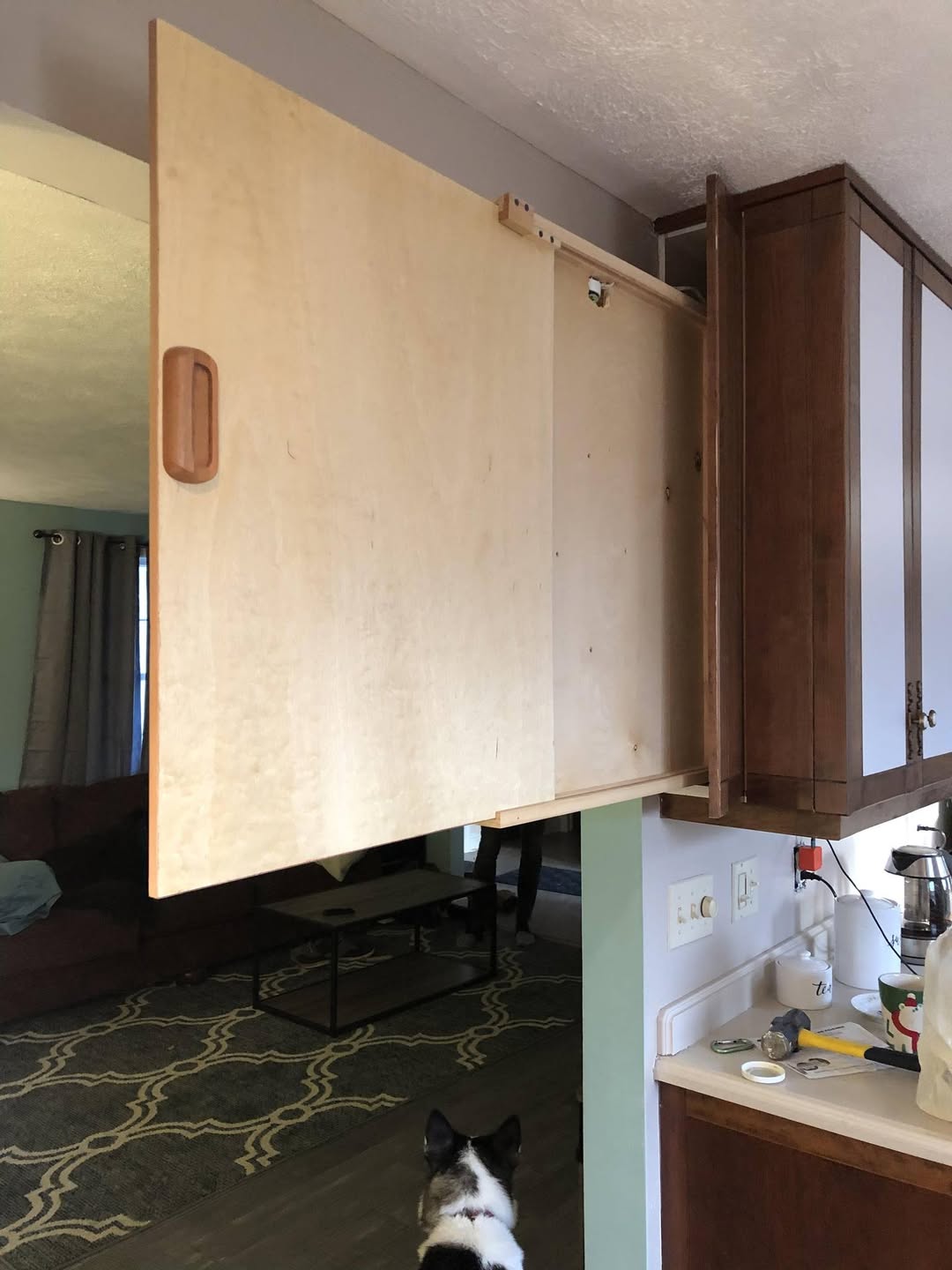 Hidden objects behind cabinets are sometimes part of a plumbing or electrical system. In older homes, access panels are often located in places where they are out of view, like behind cabinets or furniture, in order to reach pipes, wiring, or other systems that need occasional maintenance.