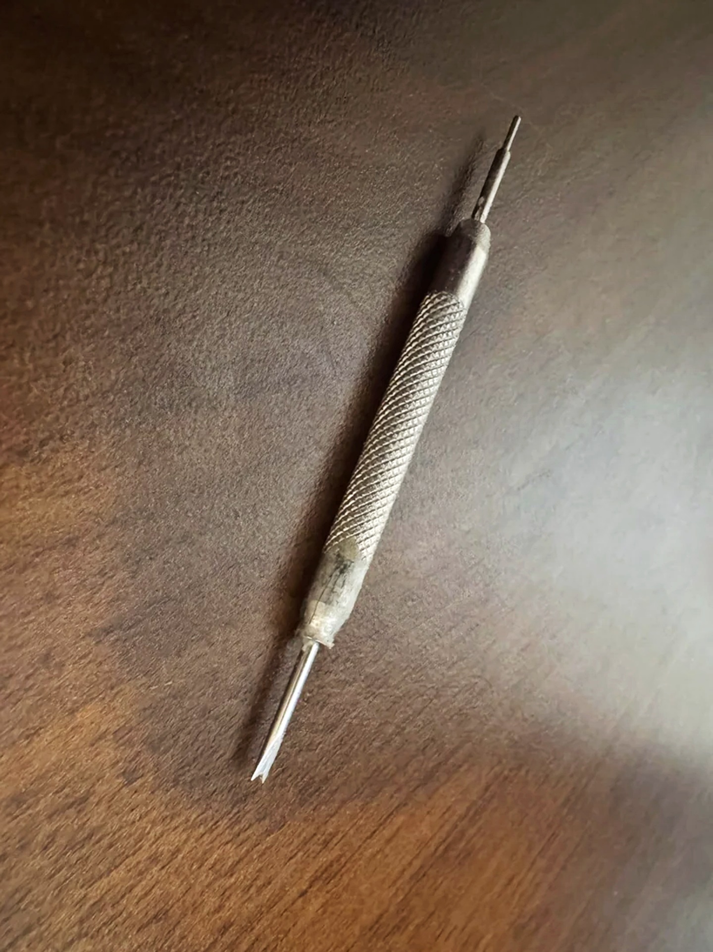 With patience and precision, it would push, align, or extract the tiny pins that hold watch straps together—a small, exacting job that demanded care, or risked scratching the metal or damaging the leather. In its day, it was indispensable to anyone who repaired or adjusted watches, a quiet helper in an era when timepieces were cherished and maintained rather than discarded.