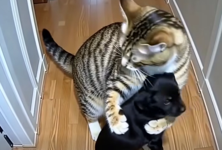 I thought it would be a quiet afternoon — just laundry, cartoons in the background, and the soft hum of home life. But peace shattered the moment my daughter, Lili, shouted, “Mom! Marsa’s back — and she has something!” I hurried to the living room and froze. Our tabby cat, Marsa, was gently holding a tiny puppy in her mouth, placing it beside four others she had mysteriously delivered home earlier that day. She curled around them protectively, purring like she was their mother. It didn’t matter that she was a cat and they were puppies — she looked at them with pure devotion, as if rescuing them was her purpose. I stood there speechless, wondering where she kept finding them… and why. Moments later, a firm knock at the door snapped me back to reality, and a chill ran down my spine.