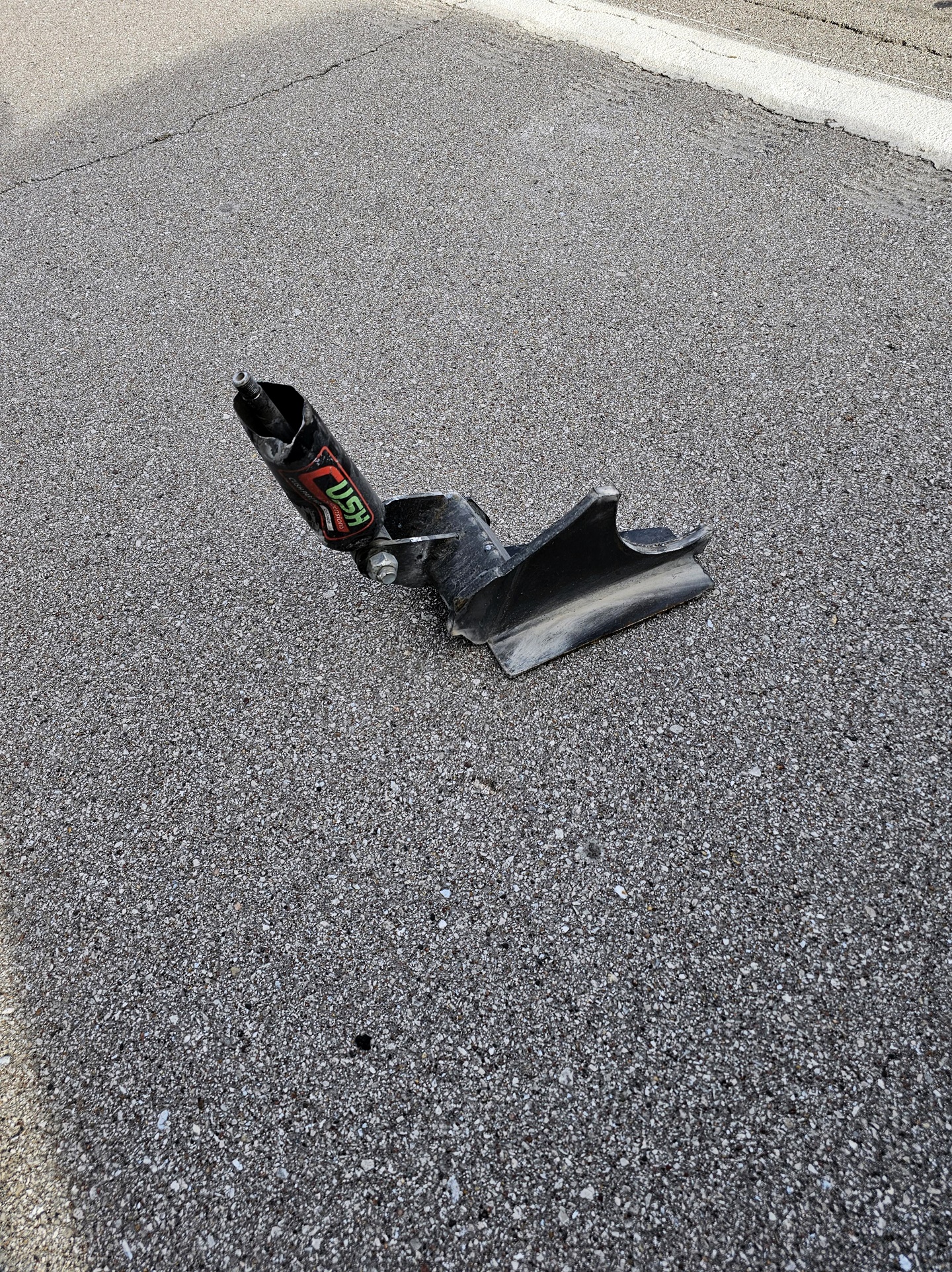 Winters are never gentle on machinery, and this battered piece of metal tells the story. What looks like the remnants of a hydraulic skid from a snowplow blade shows clear signs of strain — twisted brackets, worn welds, and a fracture right where the pressure’s highest.