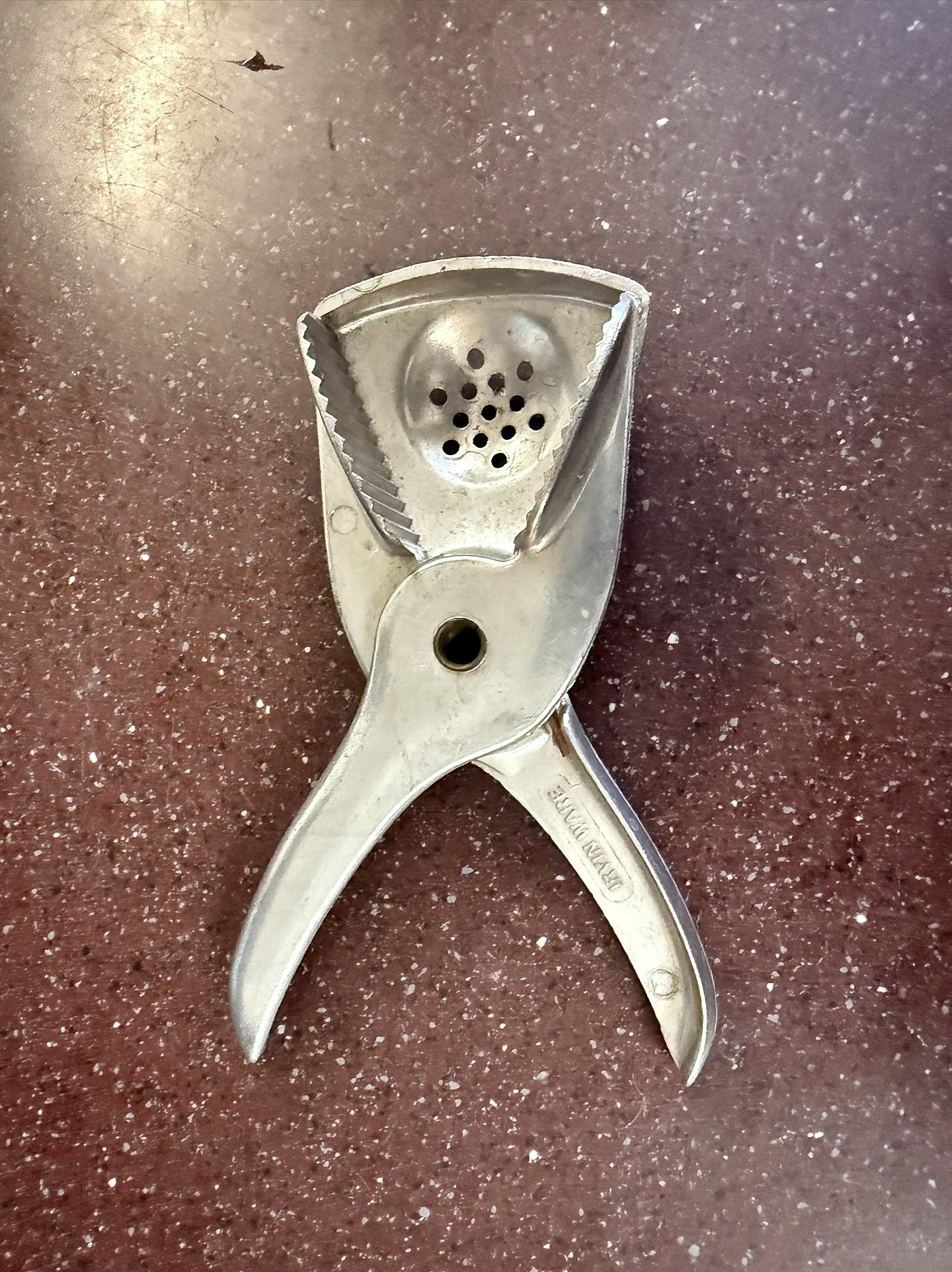 It’s small, made of metal, and feels satisfyingly solid in the hand. Its hinges creak a little with age, and its curved shape looks like it was made to cradle something delicate. Many might pass it by in a drawer or flea market stall, unsure of what it does. Yet, in its time, this little tool was a staple in kitchens everywhere — a simple invention that turned a bit of effort into a splash of brightness.