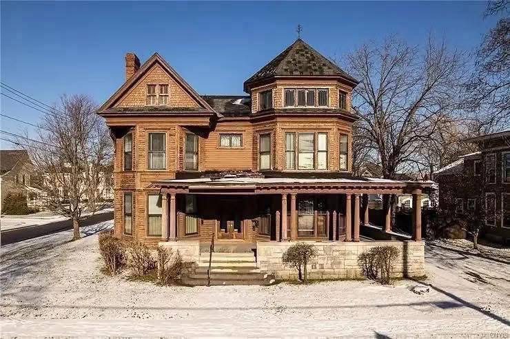 The exterior, with its elaborate trim and commanding presence, speaks to an era when architecture was an art form.