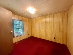The room’s generous size provides flexibility for furniture arrangements, making it easy to create cozy conversation areas or reading nooks. With a touch of updating or new décor, this living room can be transformed into a stunning centerpiece for the home — equal parts rustic charm and modern comfort.