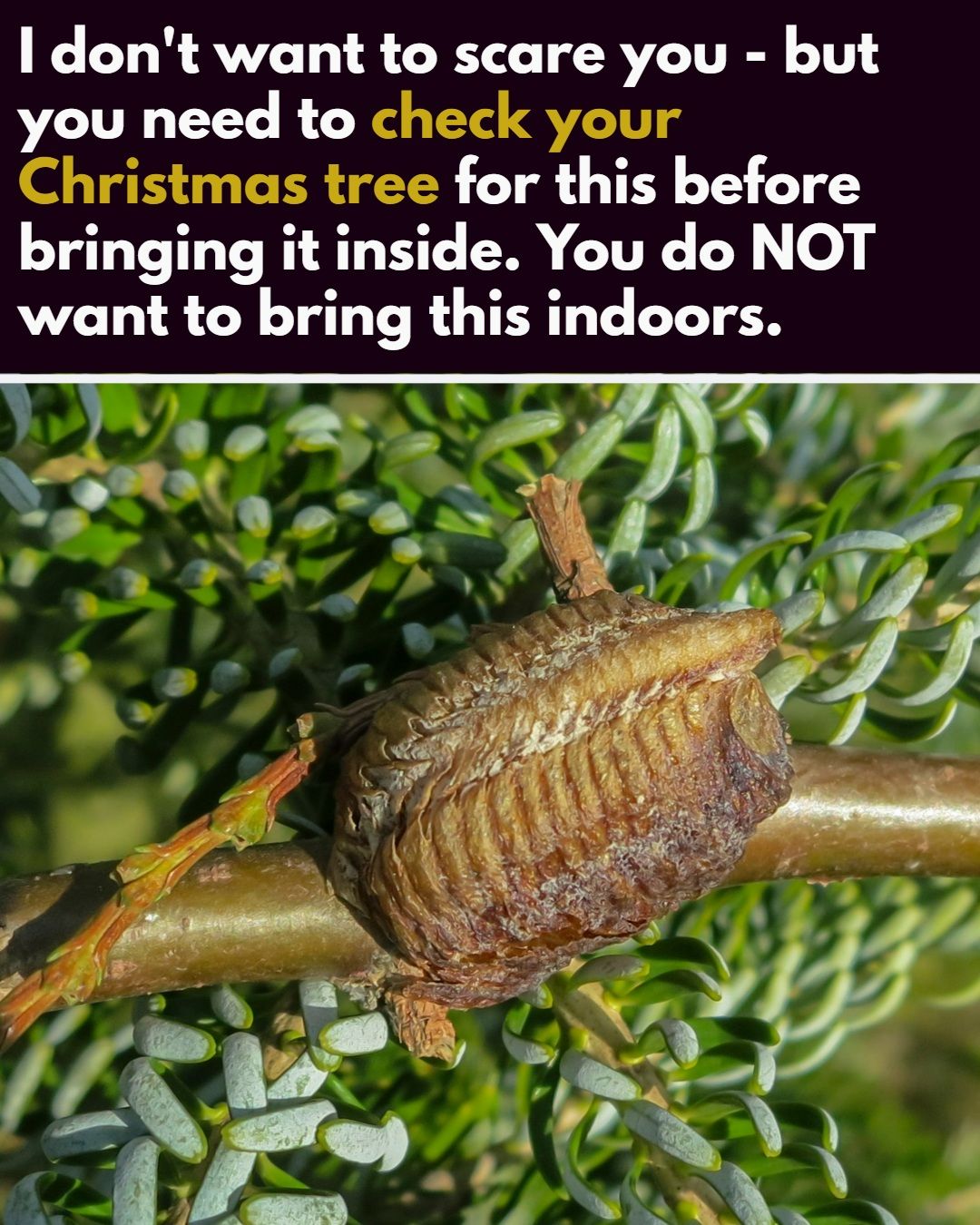 Ah, the holidays, pumpkin pie, decorating for Christmas and weird warnings about alien-looking insect sacks hiding in your Christmas tree.