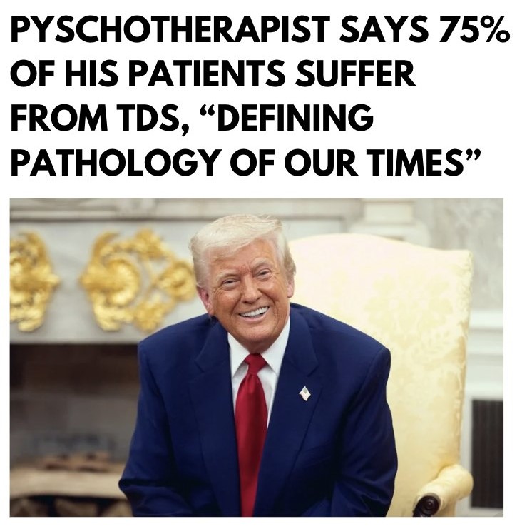 Continuing, he explained that the sort of person who has TDS gets traumatized just by the existence of Mr. Trump, saying, “They can’t sleep. They feel traumatized by Mr. Trump. They feel restless. I had one patient who said she couldn’t enjoy a vacation because anytime she saw Trump in the news or on her device, she felt triggered. So this is a profound pathology, and I would even go so far as to call it the defining pathology of our time.”