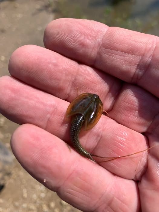 At first glance, the animal’s domed shell, long tail spine, and armored plates made it look like a relic from the age of dinosaurs. Its shape was unlike anything most people in the Midwest are familiar with, and its stiff, helmet-like carapace only deepened the mystery. The finder wasn’t sure whether it was a crustacean, an insect, or some kind of fossilized creature washed in by the storm.