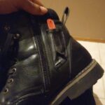 One end of the strop was in the hand and the other end was attached to the hook on the wall. The amount of tension provided sufficient friction to hone the blade so it would glide smoothly across the leather.