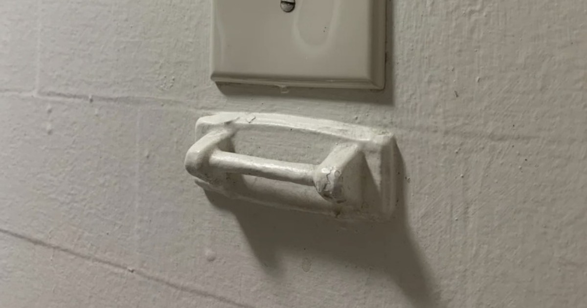 Older homes (early 1900s to 1940s) sometimes have small metal or ceramic hooks on bathroom walls, which may have been used as a shaving strop hook, although they are too small for towels and somewhat awkwardly located for toilet paper.